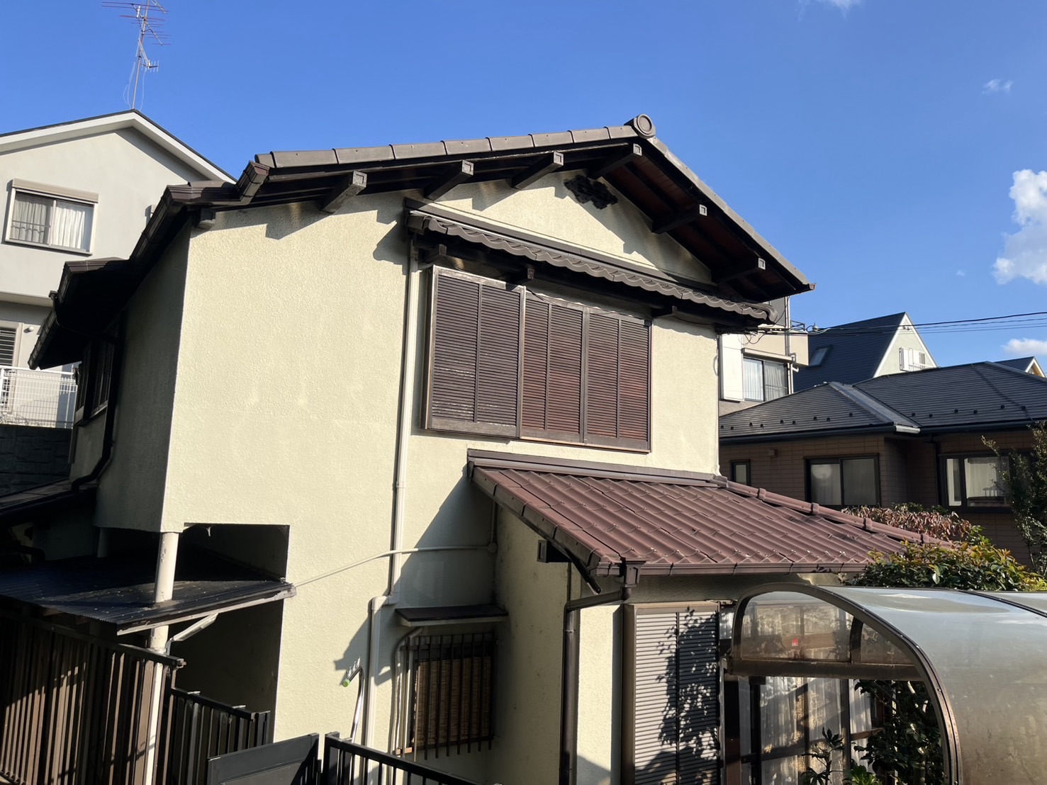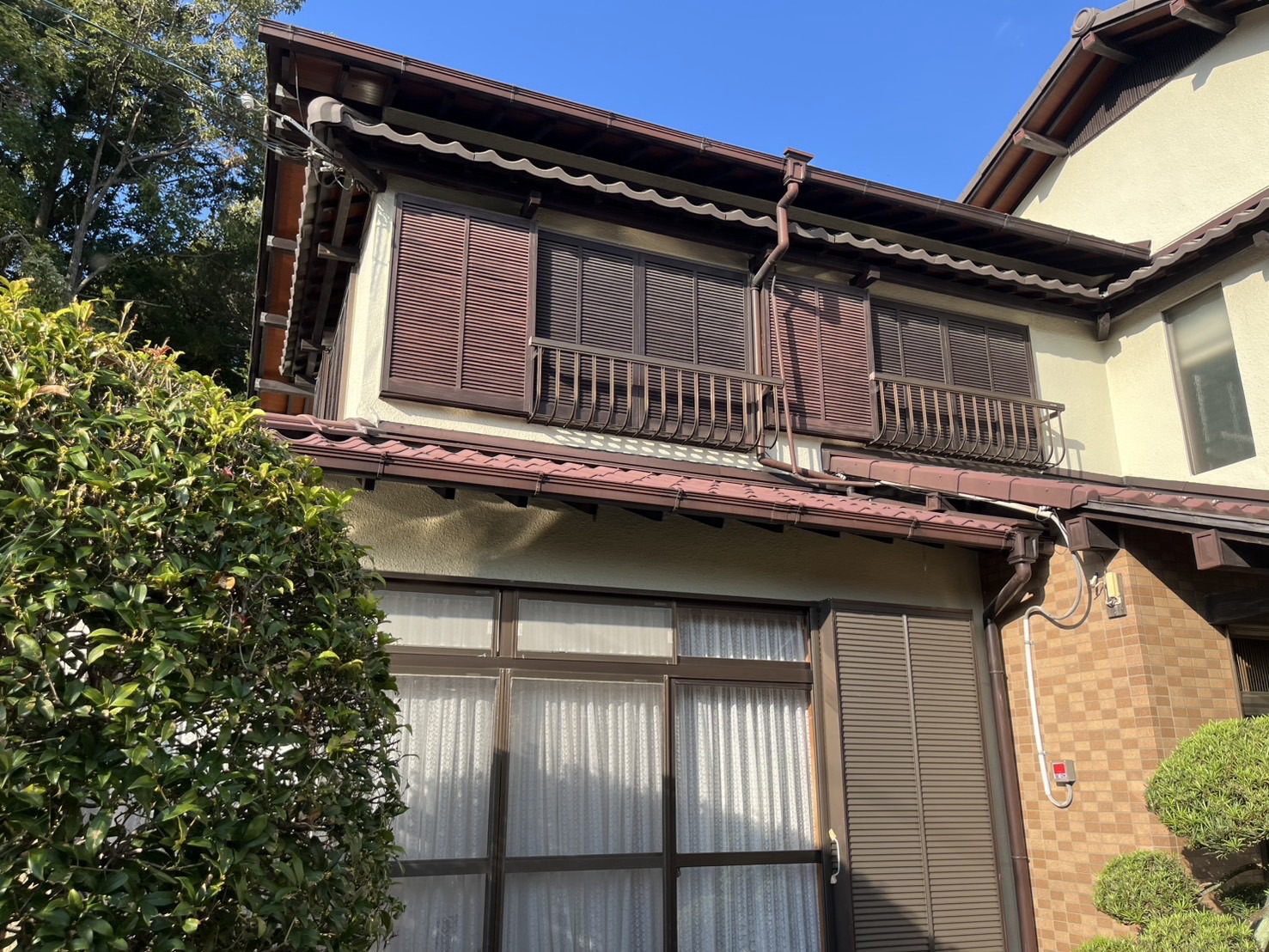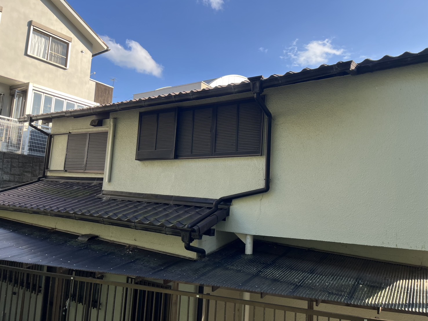 屋根だけのご依頼やったのですが、足場を組むし、塗り替えから15年とのこととクラックやチョーキングも見られたので外壁塗装もお勧めしたところ快くご依頼くださいました。