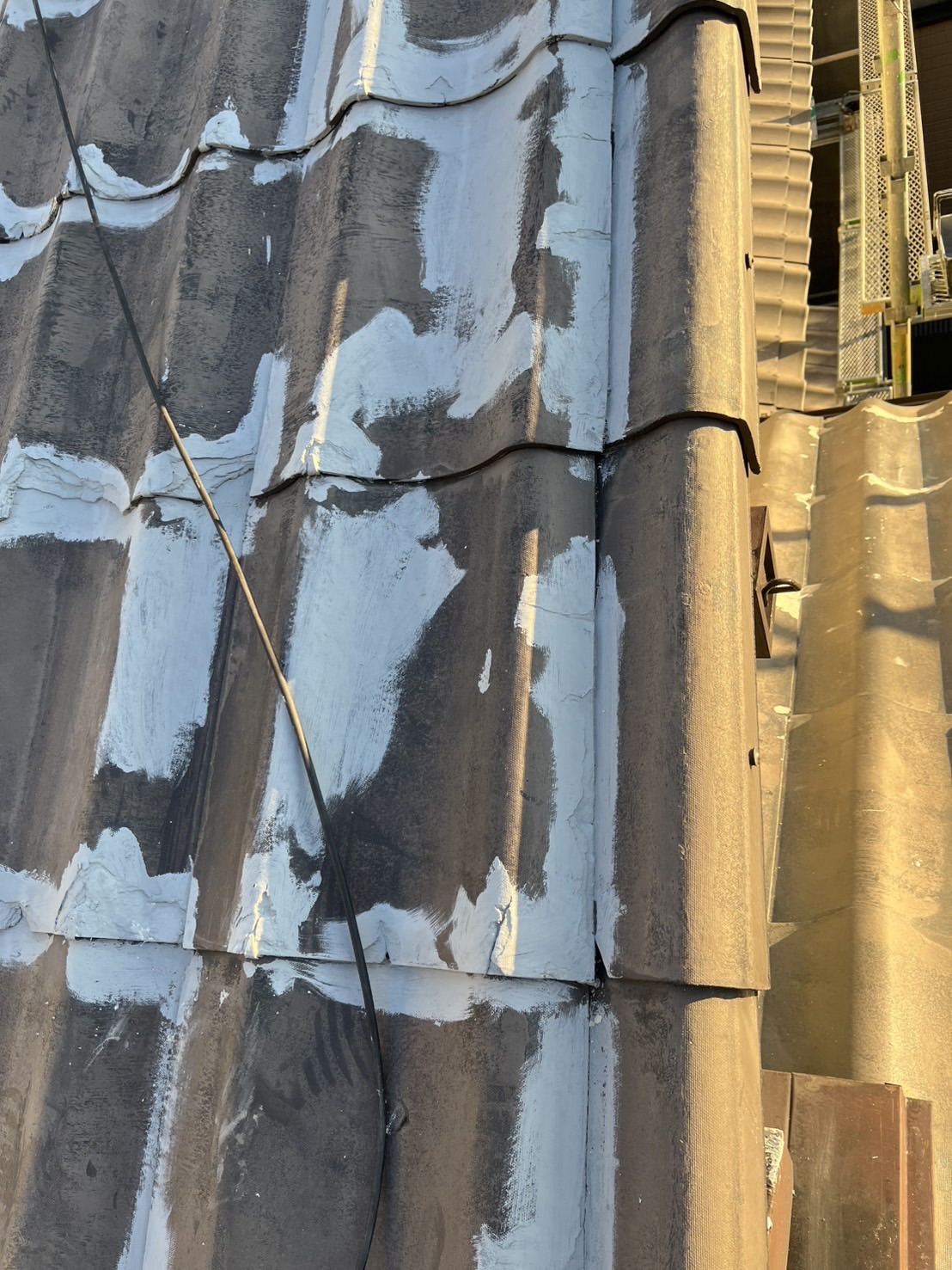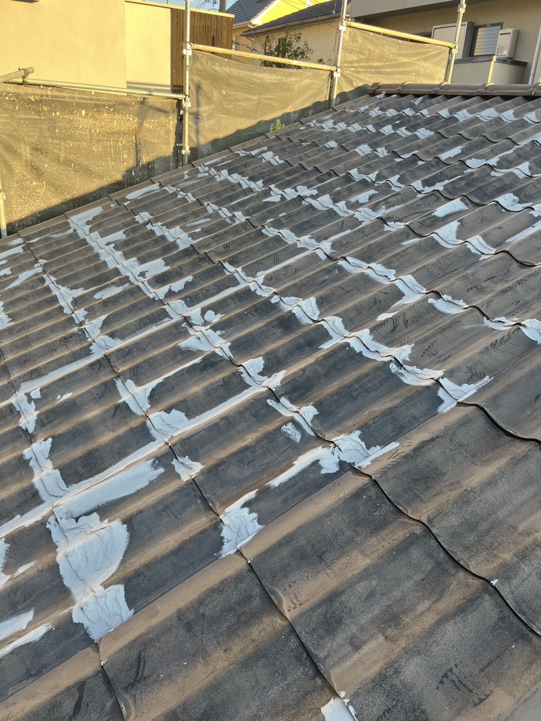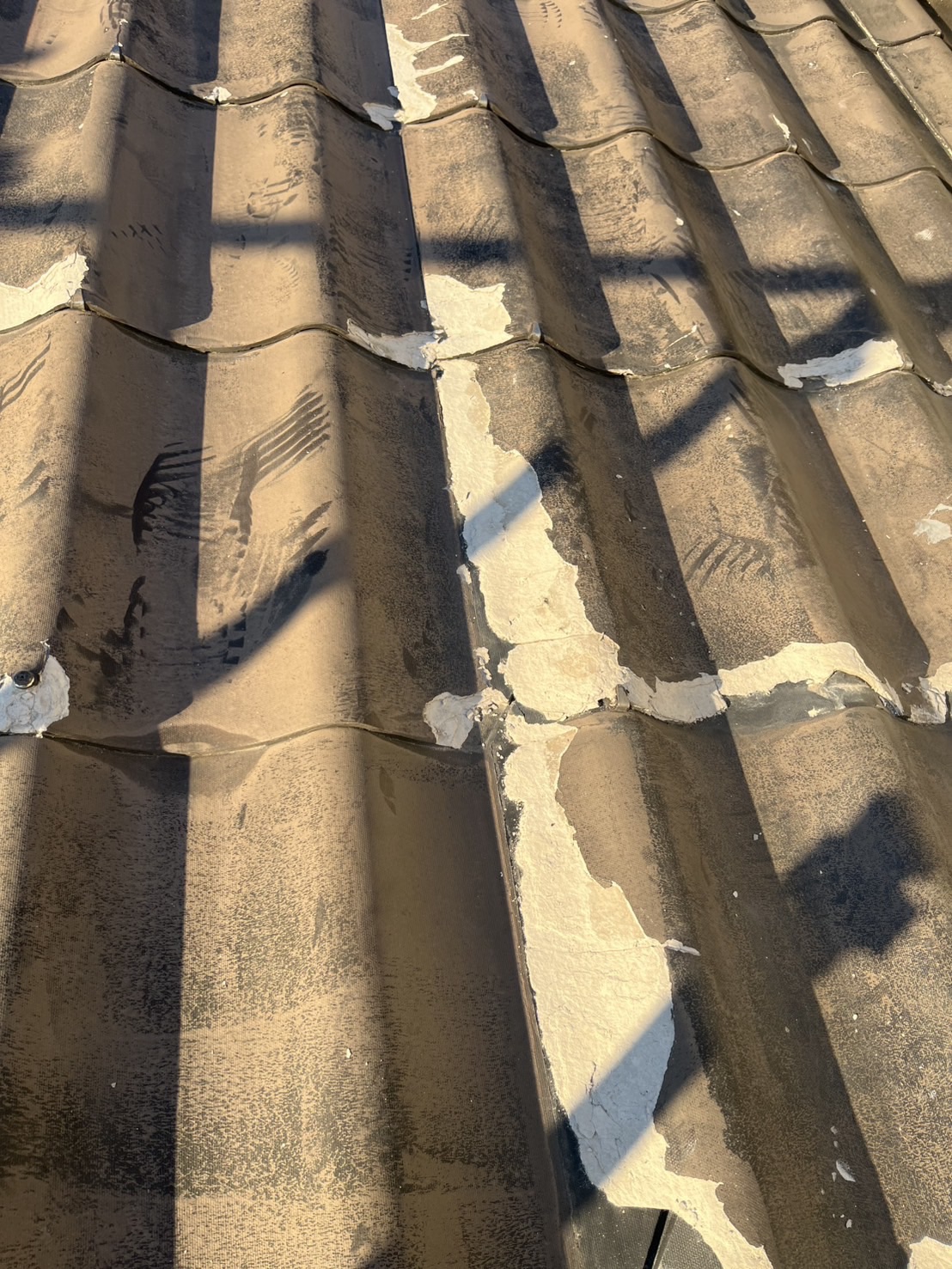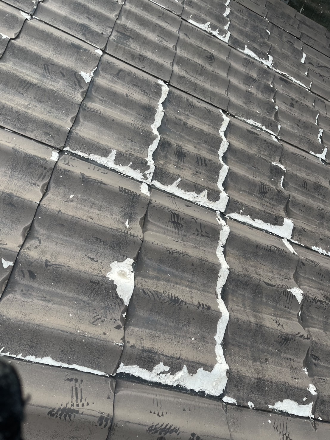 セキスイのU瓦かな?ですが、不良品ですねコレ。建てた直ぐに震災があってセキスイも手が回らなかったのか最低限しか、やりかえてくれなかったらしいです。塗っても全く意味がない事は無いので、カバー工法の30パーセント以内の値段で出来るし表面が劣化はしてますが致命的なひび割れなど見られなかったので紫外線や熱に干渉されにくい遮熱塗料で塗装する事にしました。